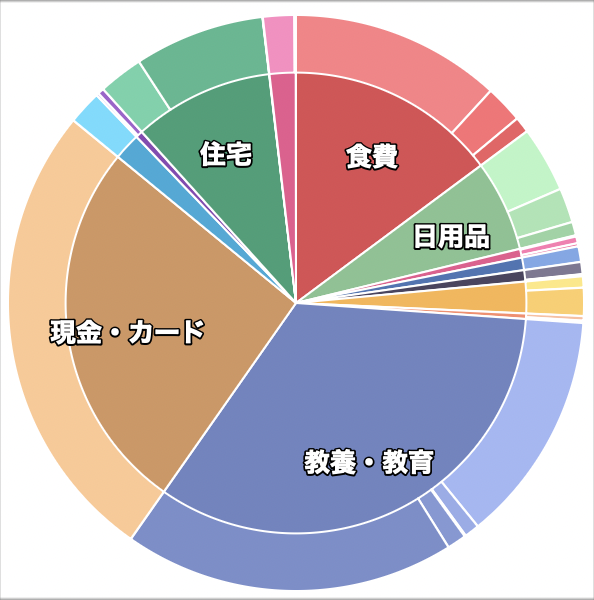 塾代と現金・カード支出の割合が大きくなりました。